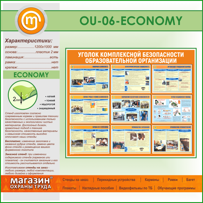 Стенд «Уголок комплексной безопасности образовательной организации» (OU-06-ECONOMY)