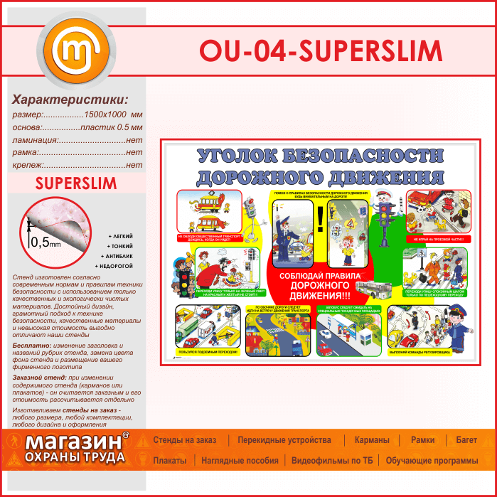 Стенд «Уголок безопасности дорожного движения» (OU-04-SUPERSLIM)