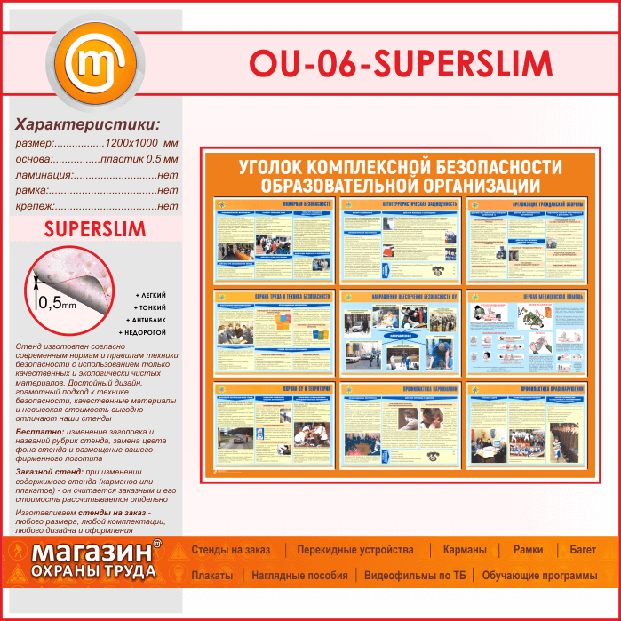Стенд «Уголок комплексной безопасности образовательной организации» (OU-06-SUPERSLIM)