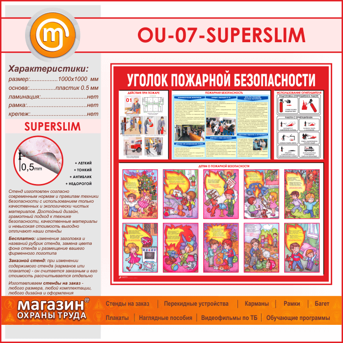 Стенд «Уголок пожарной безопасности» (OU-07-SUPERSLIM)