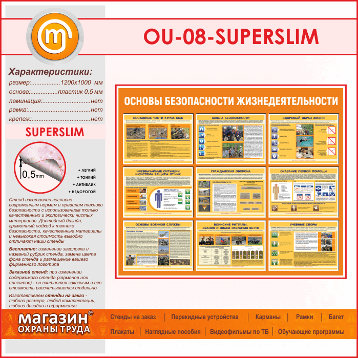 Стенд «Основы безопасности жизнедеятельности» (OU-08-SUPERSLIM)