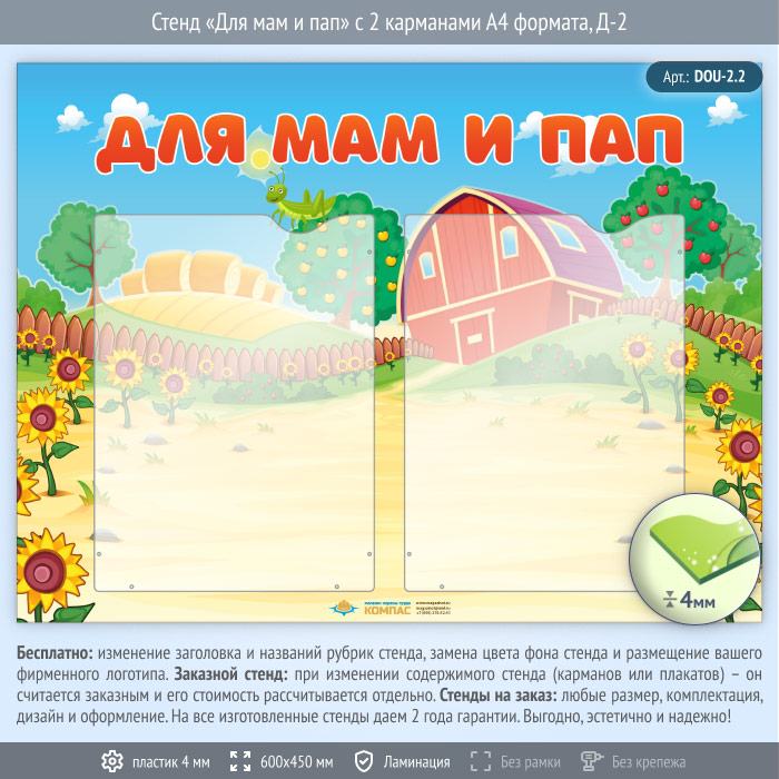Стенд «Для мам и пап» с 2 карманами А4 формата (DOU-2.2)