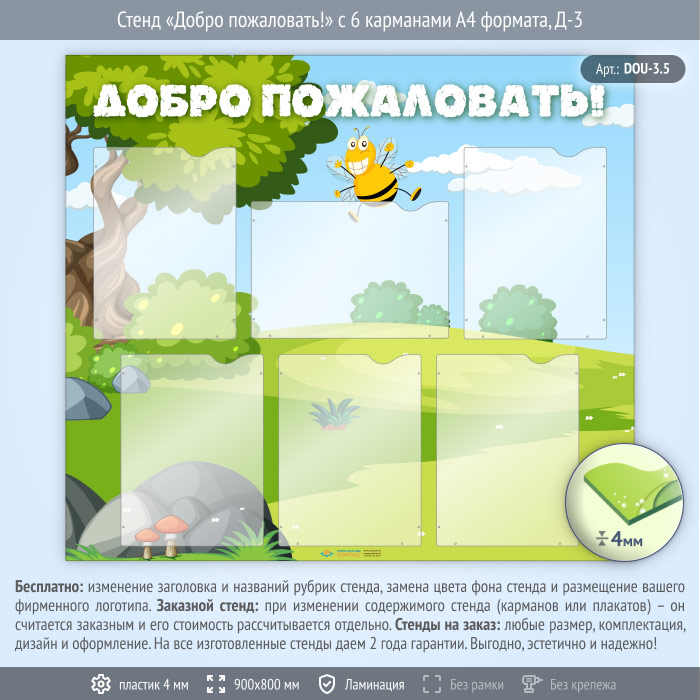 Стенд «Добро пожаловать!» с 6 карманами А4 формата (DOU-3.5)