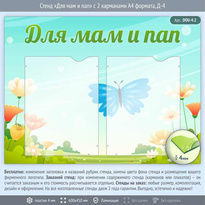 Стенд «Для мам и пап» с 2 карманами А4 формата (DOU-4.2)