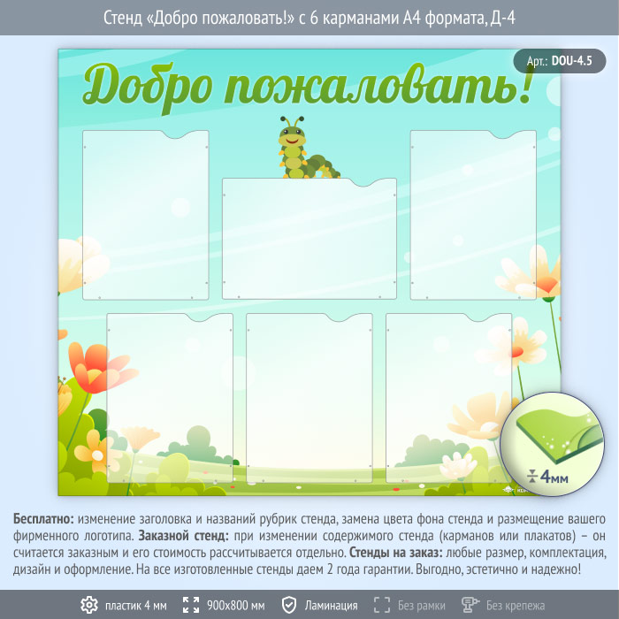 Стенд «Добро пожаловать!» с 6 карманами А4 формата (DOU-4.5)