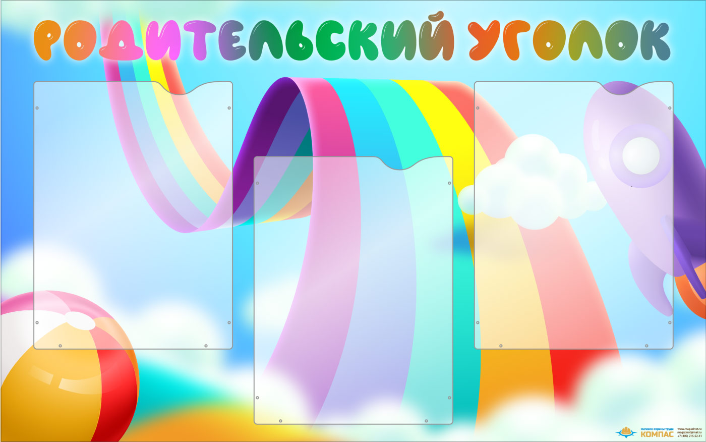 Стенд «Родительский уголок» с 3 карманами А4 формата (DOU-5.3) имеет яркий, привлекательный дизайн, отлично подходящий для детского сада.