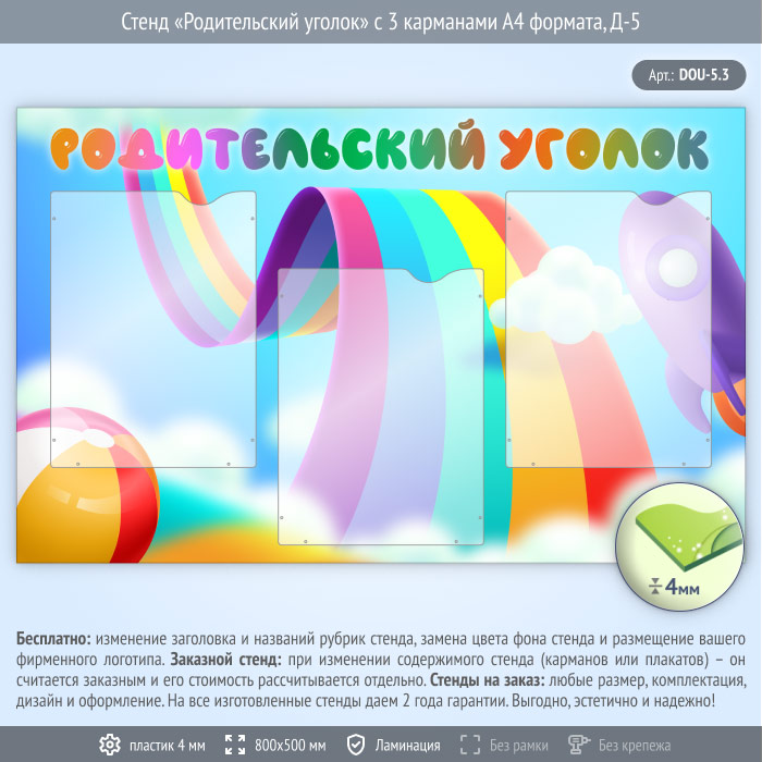 Стенд «Родительский уголок» с 3 карманами А4 формата (DOU-5.3)