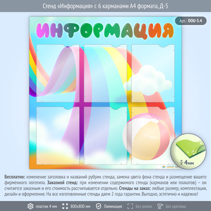 Стенд «Информация» с 6 карманами А4 формата (DOU-5.4)