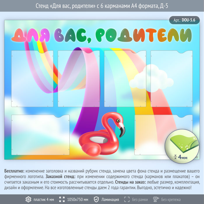 Стенд «Для вас, родители» с 6 карманами А4 формата (DOU-5.6)