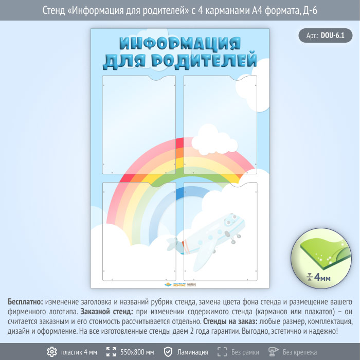 Стенд «Информация для родителей» с 4 карманами А4 формата (DOU-6.1)