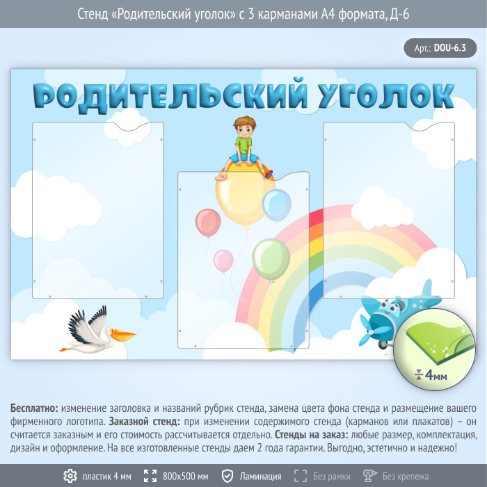 Стенд «Родительский уголок» с 3 карманами А4 формата (DOU-6.3)