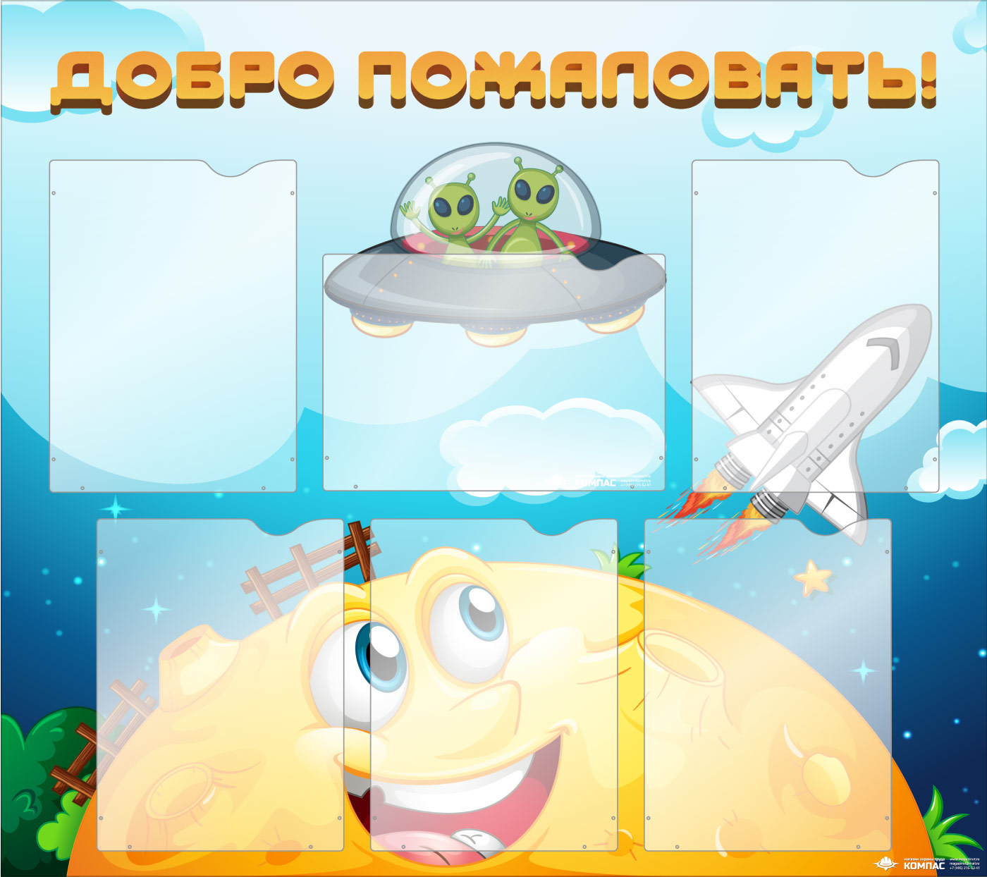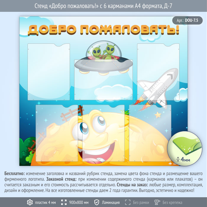 Стенд «Добро пожаловать!» с 6 карманами А4 формата (DOU-7.5)
