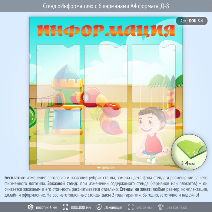 Стенд «Информация» с 6 карманами А4 формата (DOU-8.4)