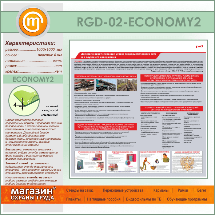 Стенд «Действия работников при угрозе совершения террористического акта и в случае его совершения» (RGD-02-ECONOMY2)