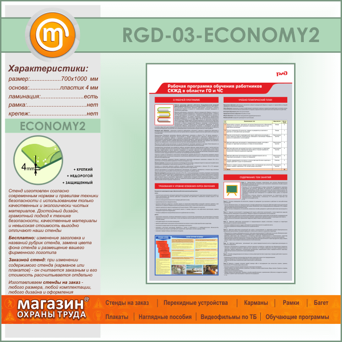 Стенд «Рабочая программа обучения работников СКЖД в области ГО и ЧС» (RGD-03-ECONOMY2)