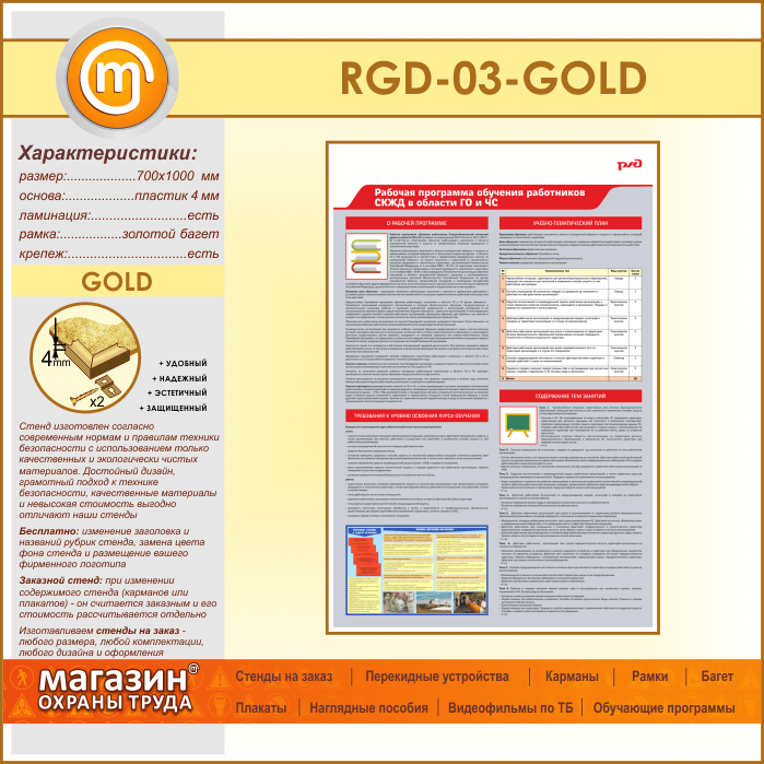 Стенд «Рабочая программа обучения работников СКЖД в области ГО и ЧС» (RGD-03-GOLD)