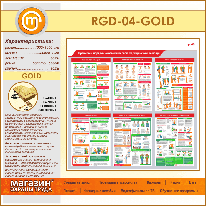 Стенд «Правила и порядок оказания первой медицинской помощи» (RGD-04-GOLD)