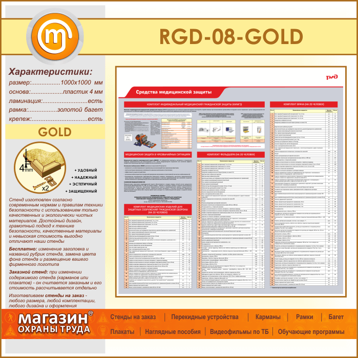 Стенд «Средства медицинской защиты» (RGD-08-GOLD)