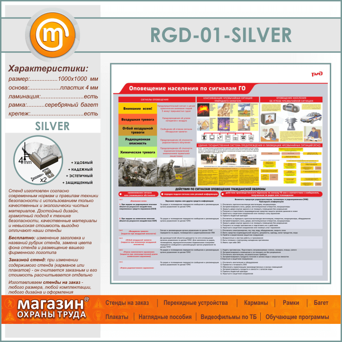 Стенд «Оповещение населения по сигналам ГО» (RGD-01-SILVER)