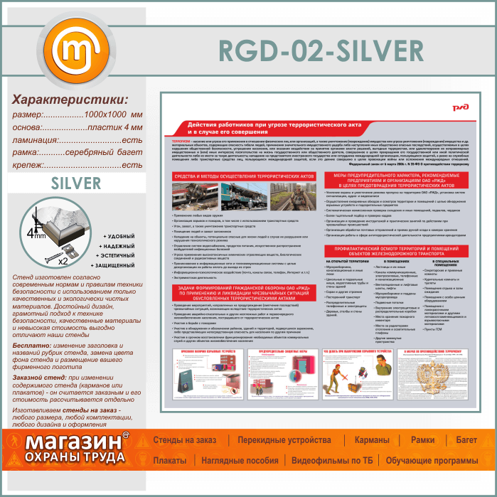 Стенд «Действия работников при угрозе совершения террористического акта и в случае его совершения» (RGD-02-SILVER)