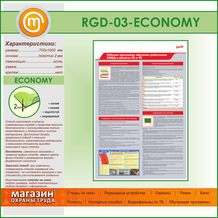 Стенд «Рабочая программа обучения работников СКЖД в области ГО и ЧС» (RGD-03-ECONOMY)