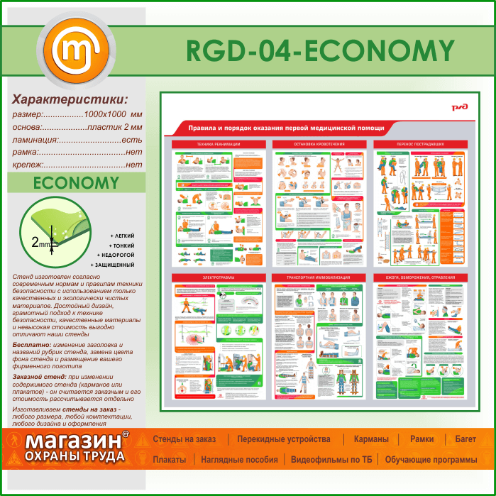 Стенд «Правила и порядок оказания первой медицинской помощи» (RGD-04-ECONOMY)