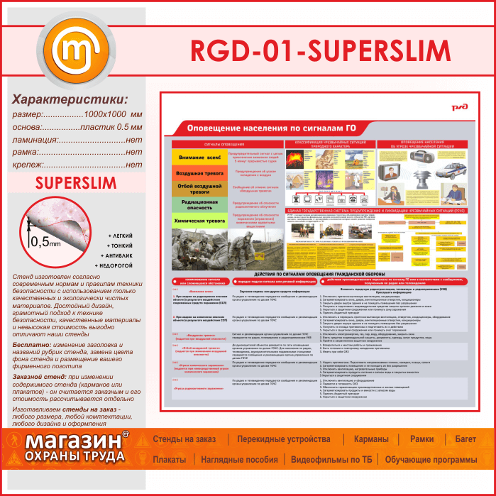 Стенд «Оповещение населения по сигналам ГО» (RGD-01-SUPERSLIM)