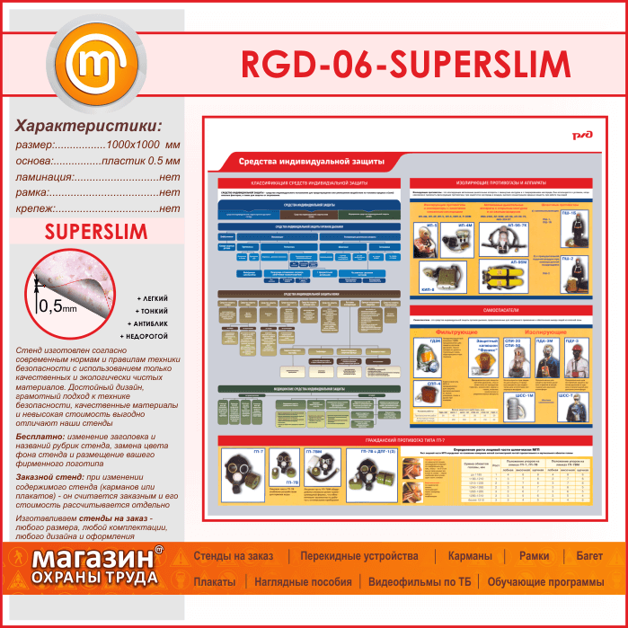 Стенд «Средства индивидуальной защиты» (RGD-06-SUPERSLIM)