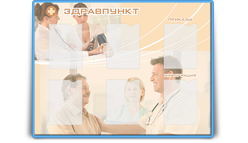 - Вы можете сами выбрать цвет фона и заголовка. Также на стенде можно разместить Ваш логотип и другую, например, рекламную информацию