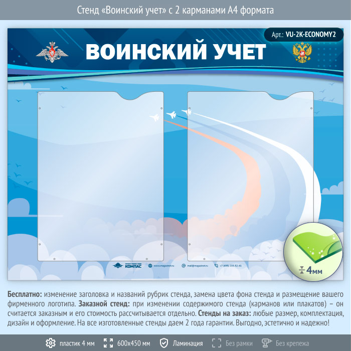 Стенд «Воинский учет» с 2 карманами А4 формата (VU-2K-ECONOMY2)