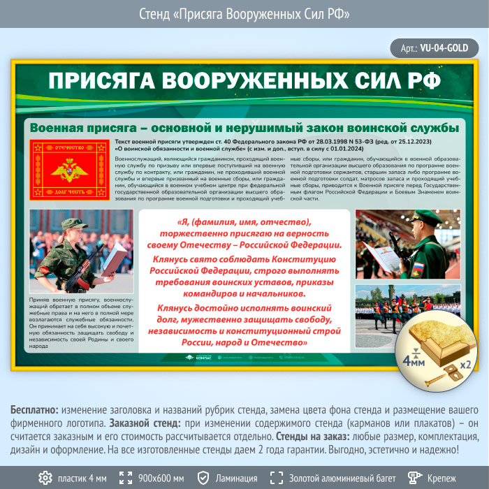 Стенд «Присяга Вооруженных Сил РФ» (VU-04-GOLD)