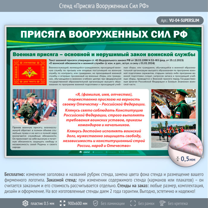 Стенд «Присяга Вооруженных Сил РФ» (VU-04-SUPERSLIM)