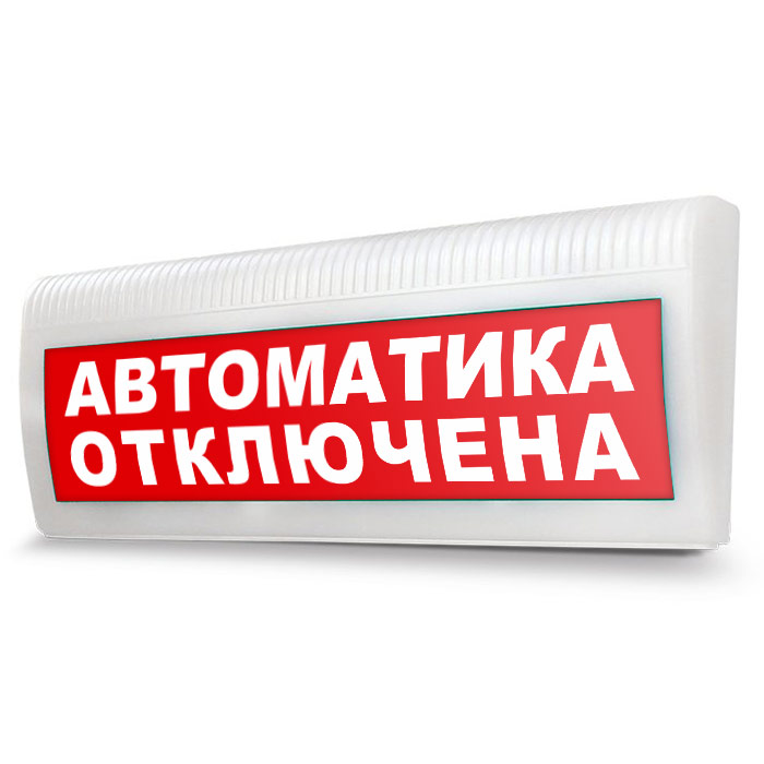 Световое табло «Автоматика отключена» чаще всего покупают в трех наиболее распространненных версиях: Молния ЛАЙТ, 12В и 220В РИП. Однако можно заказать надпись/знак и на других моделях световых оповещателей