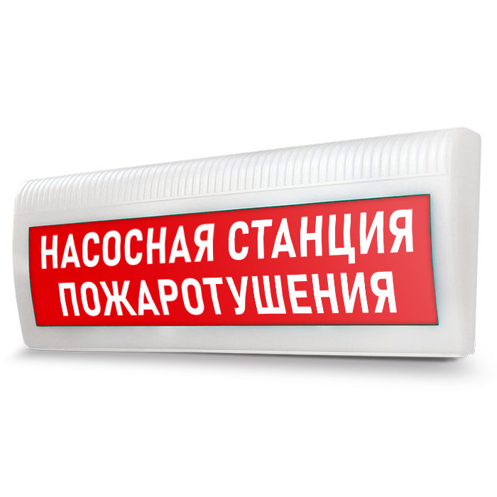 Световое табло «Насосная станция пожаротушения» чаще всего покупают в трех наиболее распространненных версиях: Молния ЛАЙТ, 12В и 220В РИП. Однако можно заказать надпись/знак и на других моделях световых оповещателей