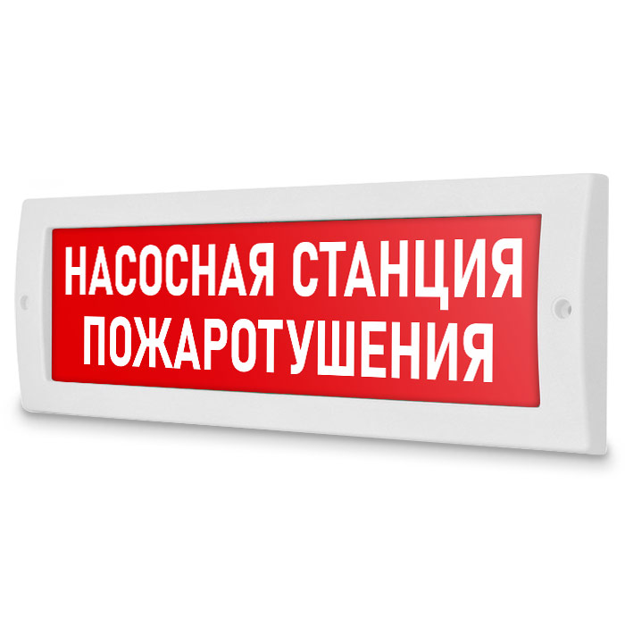 Световое табло «Насосная станция пожаротушения». Плоское световое табло Молния (12В) служит для обозначения эвакуационных путей в помещениях различного назначения. Данный светоуказатель имеет минимальное энергопотребление. Световой блок светового указателя выполнен на светодиодах и не требует текущего обслуживания