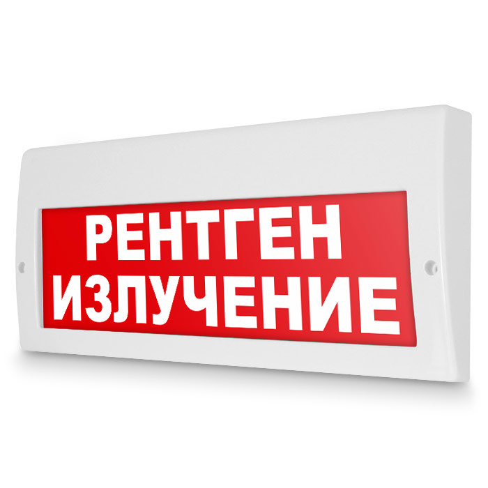 Световое табло «Рентген излучение». Плоское световое табло Молния (220В РИП) с резервным источником питания служит для обозначения эвакуационных путей в помещениях различного назначения. Конструкция светового указателя дает возможность менять надпись. Световой блок светового указателя выполнен на светодиодах и не требует текущего обслуживания