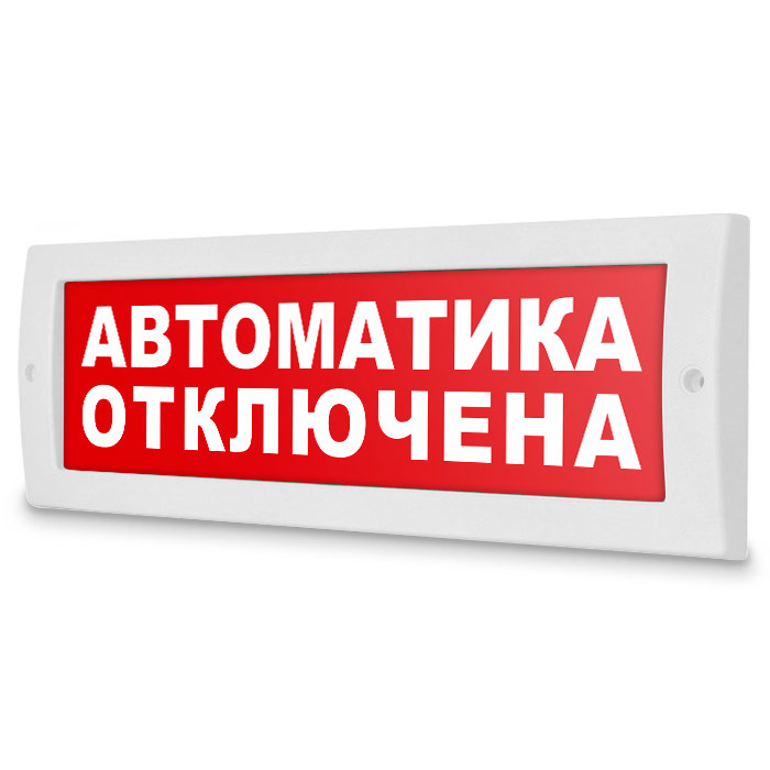 Световое табло «Автоматика отключена». Плоское световое табло Молния (12В) служит для обозначения эвакуационных путей в помещениях различного назначения. Данный светоуказатель имеет минимальное энергопотребление. Световой блок светового указателя выполнен на светодиодах и не требует текущего обслуживания