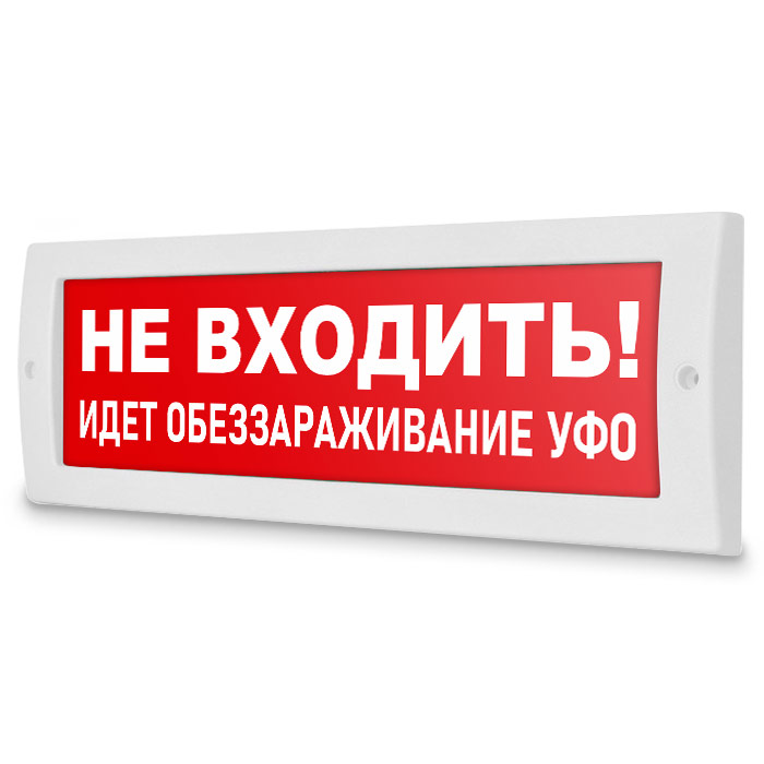 Световое табло «Не входить! Идет обеззараживание УФО». Плоское световое табло Молния (12В) служит для обозначения эвакуационных путей в помещениях различного назначения. Данный светоуказатель имеет минимальное энергопотребление. Световой блок светового указателя выполнен на светодиодах и не требует текущего обслуживания