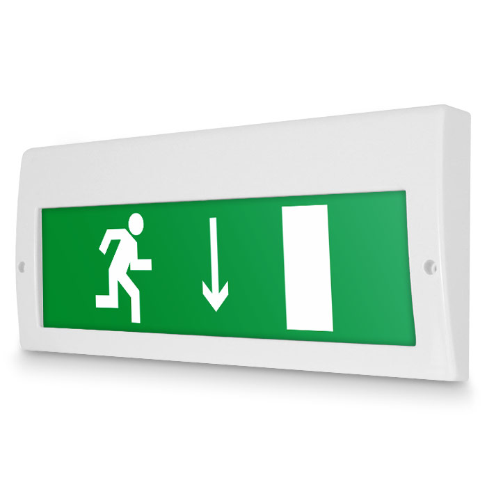 Световое табло «Указатель двери эвакуационного выхода (правосторонний)». Плоское световое табло Молния (220В РИП) с резервным источником питания служит для обозначения эвакуационных путей в помещениях различного назначения. Конструкция светового указателя дает возможность менять надпись. Световой блок светового указателя выполнен на светодиодах и не требует текущего обслуживания