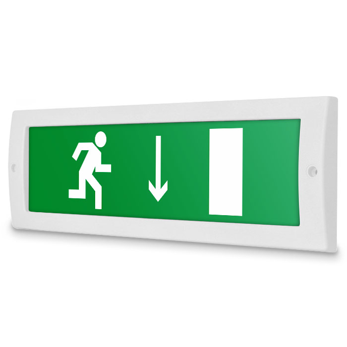 Световое табло «Указатель двери эвакуационного выхода (правосторонний)». Плоское световое табло Молния (12В) служит для обозначения эвакуационных путей в помещениях различного назначения. Данный светоуказатель имеет минимальное энергопотребление. Световой блок светового указателя выполнен на светодиодах и не требует текущего обслуживания