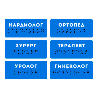 Знаки доступности, предупреждающие и информационные знаки и пиктограммы, указатели направления движения, тактильные номера и прочие знаки полностью соответствуют ГОСТ Р 52131-2019 и подходят для размещения по программе «Доступная среда».