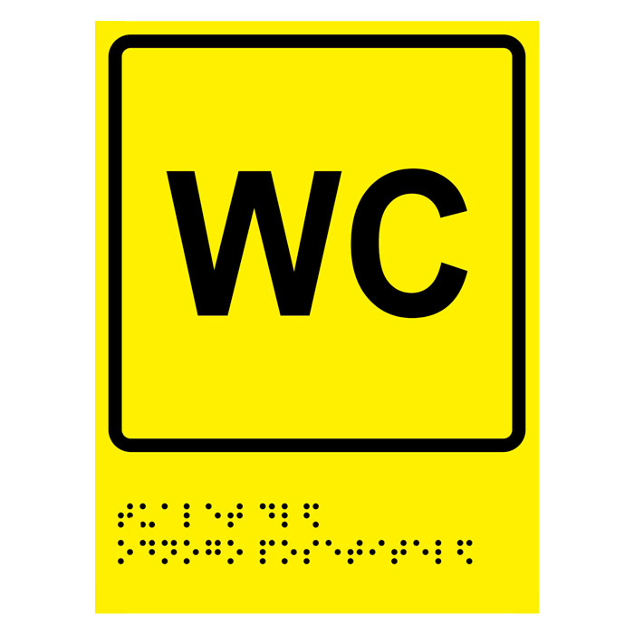 Тактильная пиктограмма «Туалет для одного посетителя» с азбукой Брайля, ДС67 на 2-мм пластике, имеет размер 150х225 мм (при желании можно выбрать другой вариант, размер и цвет). Изготавливается с рельефом (для тактильного восприятия инвалидами по зрению).