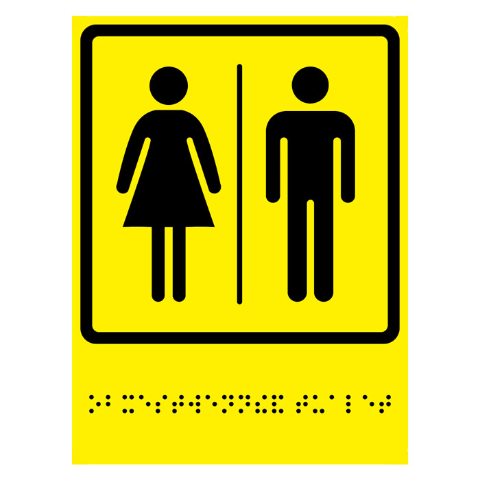 Тактильная пиктограмма «Общественный туалет» с азбукой Брайля, ДС70 (пластик 2 мм, 200х300 мм)