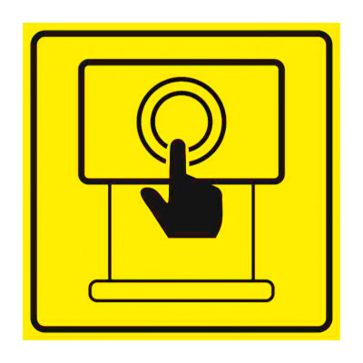 Тактильная пиктограмма «Сенсорный терминал», ДС52 на самоклеящейся пленке, имеет размер 150х150 мм (при желании можно выбрать другой вариант, размер и цвет). Изготавливается с рельефом (для тактильного восприятия инвалидами по зрению).