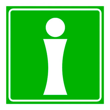 Визуальная пиктограмма «Информация», ДС29 на 3-мм полистироле, имеет размер 150х150 мм (при желании можно выбрать другой вариант, размер и цвет). Изготавливается без рельефа (не подходит для тактильного восприятия инвалидами по зрению).
