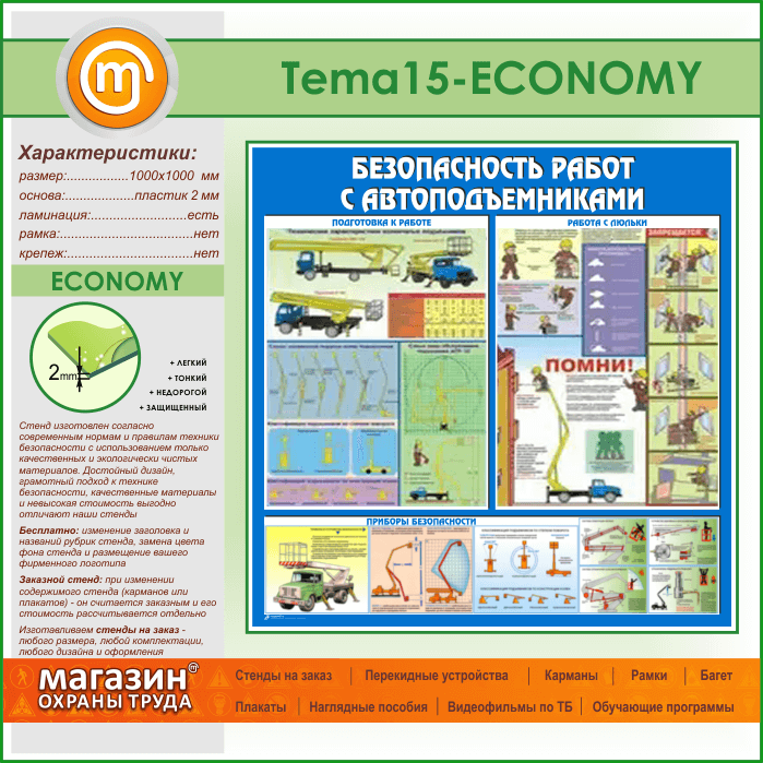Стенд «Безопасность работ с автоподъемниками» (TM-15-ECONOMY)