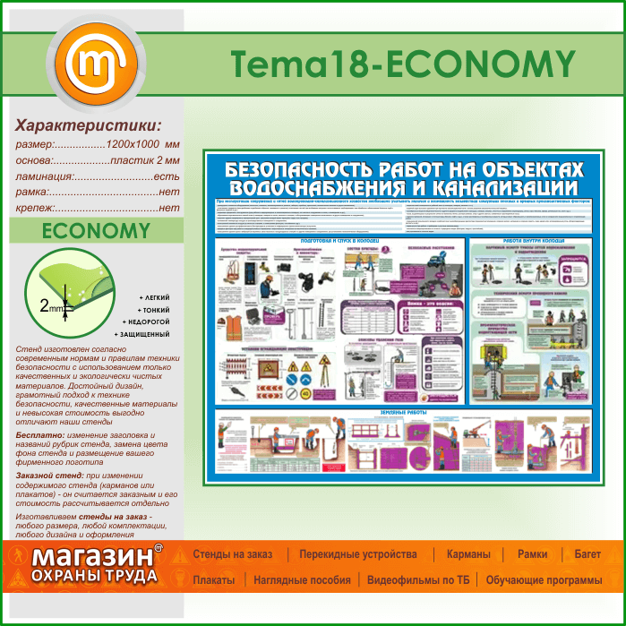 Стенд «Безопасность работ на объектах водоснабжения и канализации» (TM-18-ECONOMY)