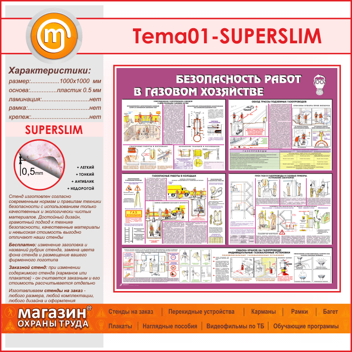 Стенд «Безопасность работ в газовом хозяйстве» (TM-01-SUPERSLIM)