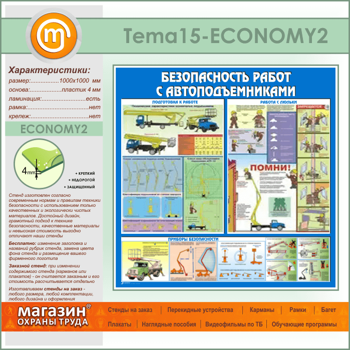 Стенд «Безопасность работ с автоподъемниками» (TM-15-ECONOMY2)