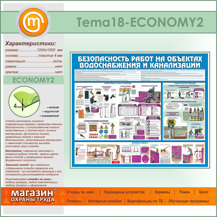 Стенд «Безопасность работ на объектах водоснабжения и канализации» (TM-18-ECONOMY2)